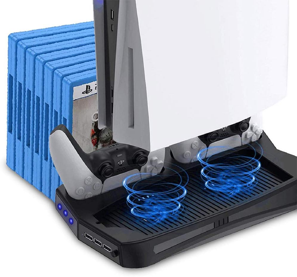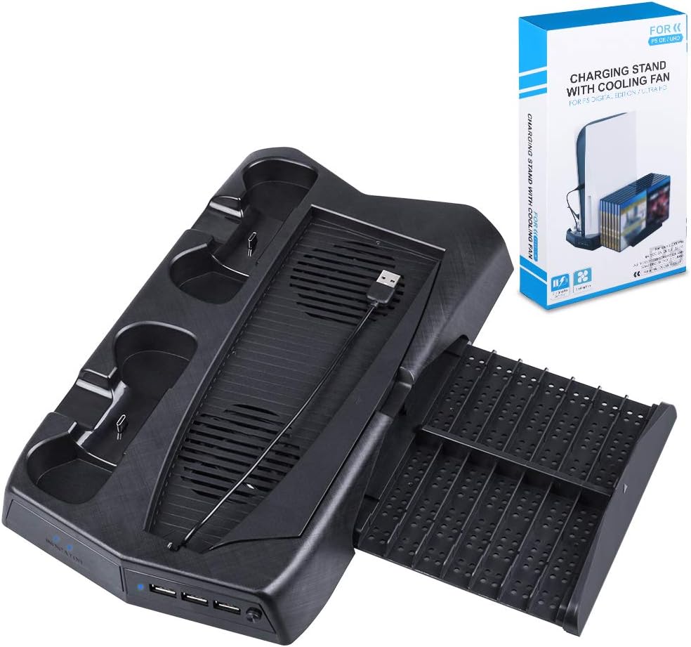 - Supporto Verticale / Edizione Digitale con Ventola, Doppia Stazione di Ricarica per Console PS5, 14 Supporto per Dischi Giochi e 3 Porte di Ricarica USB;